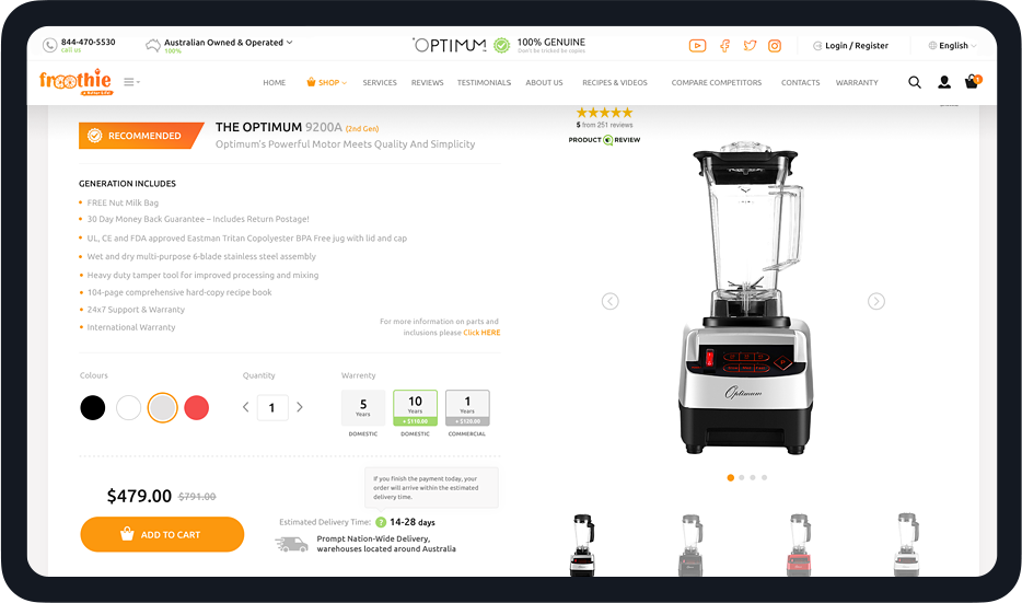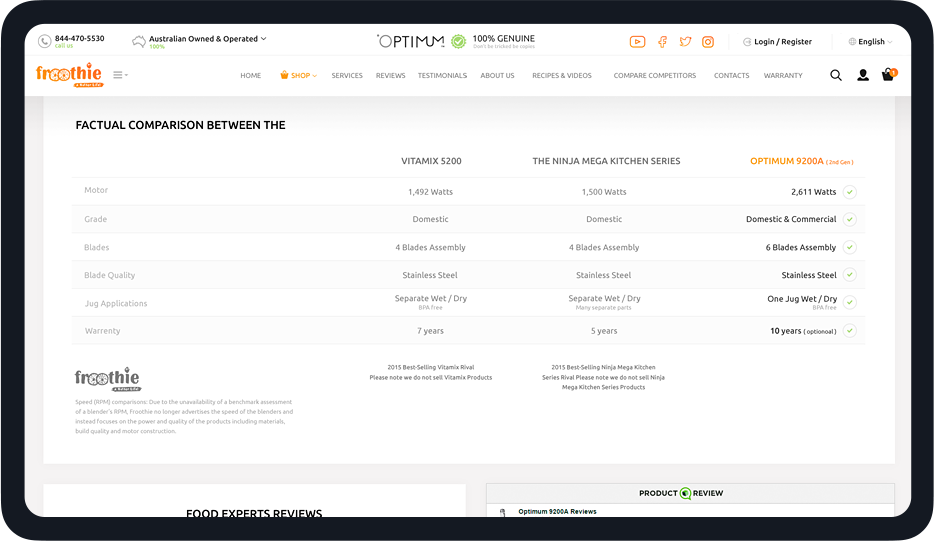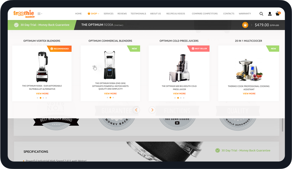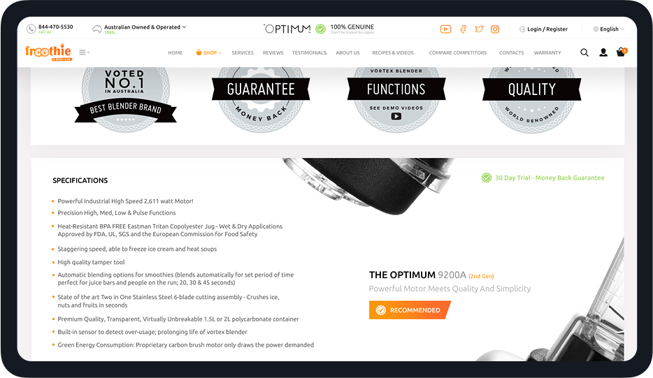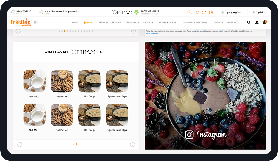 We helped froothie outgrow their own market in Australia and turn into an international brand present in 35 countries and we managed all of their marketing to help them get there. We also created an international social media campaign for them to help them raise awareness about their presence in each market. We audited their online store from every aspect possible and prepared an action plan for a total turnover of the company. We created a plan for transitioning their online store to Magento Enterprise and revised every aspect of the website to turn it into a solution that can sustain the hundreds of thousands of visits it receives from our marketing campaigns.
