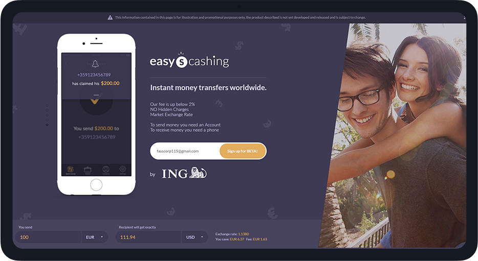 dominate a 650 billion dollar industry. - Reach the finals of ING’s innovation challenge in 2016. Convince the board of the bank that our idea is not only doable and possible but also cheap and can be done in a year.