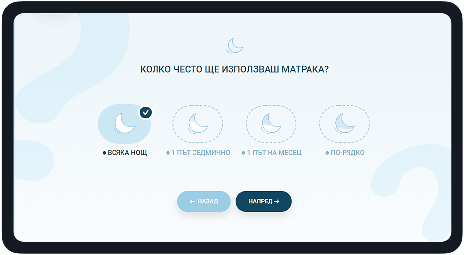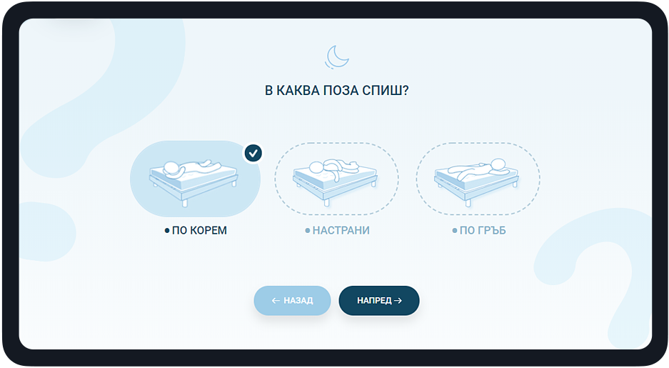 We redesigned the online stores of the No1 Italian mattress brand in Bulgaria and Romania. Magniflex came up with a really cool idea for a special kind of customer journey based on their core belief. The perfect mattress does exist but it will differ for each individual. To choose the right one, it is important to consider our habits, body structure and comfort preferences. There are numerous variables, which is why Magniflex offers a vast and varied range of mattresses that can match the different needs of different individuals.