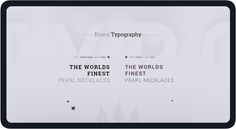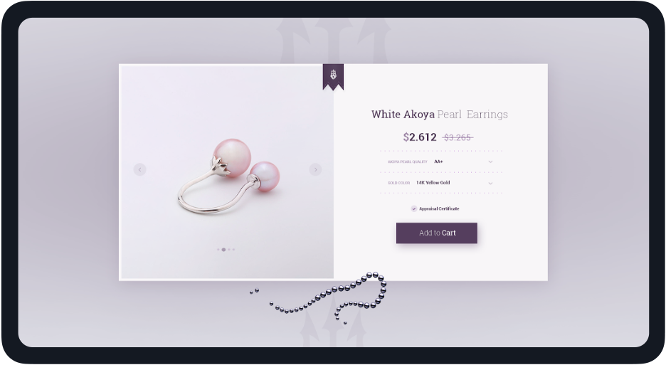 The user interface is very clean and simple to emphasize the beauty and quality of the pearls as well as allow users of all ages to navigate it with ease.