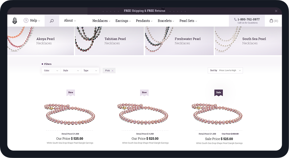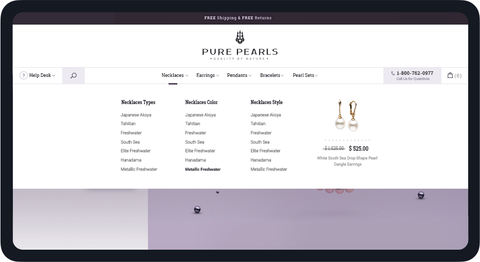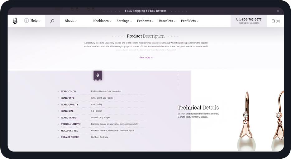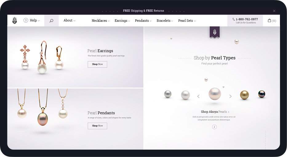 If you are not a pearl expert, like most people, chances are that you have no idea how many different types of pearls exist in the world. And how do you know which are the good ones? What makes a pearl valuable? How pearls are graded? The guys at Pure Pearls are real experts though and you can find enough information on the website to become a pearl expert yourself and learn everything from what does a pearl’s color, size, shape, luster and shape means down to the significance of where it came from. So the website had to be designed not just as a simple store but as a place to explore the beauty of pearls and learn about them so that you can select a fitting gift of true value for yourself or your loved ones.